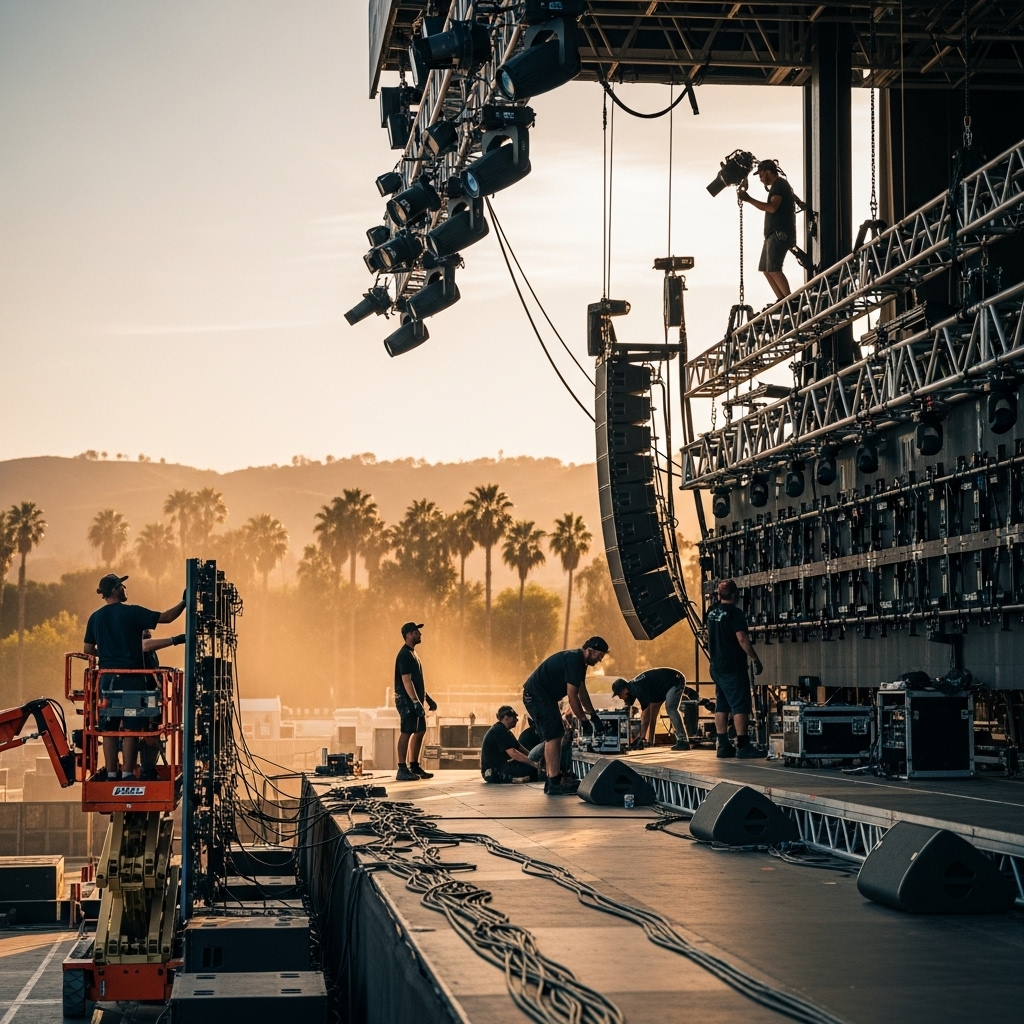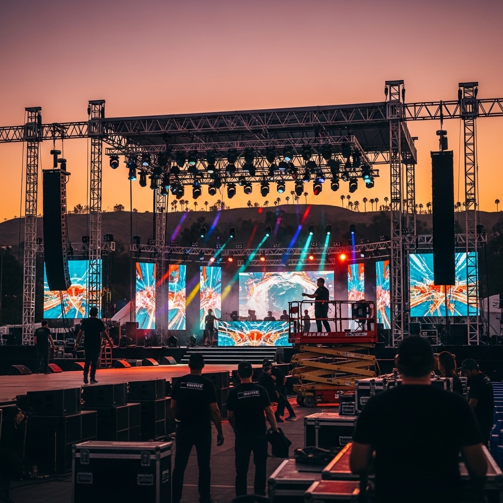 • Staging & Rigging – Stage platforms, trussing, and rigging for indoor and outdoor events